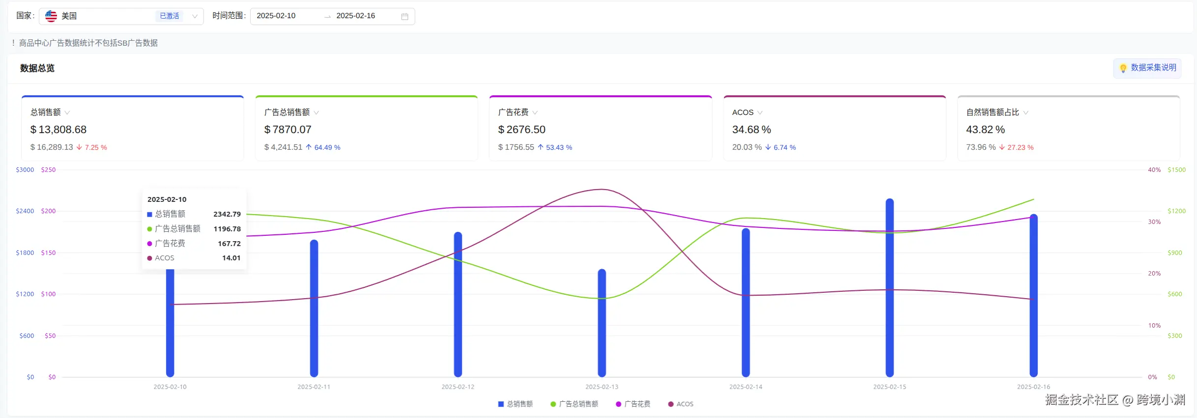 使用DeepBI的第一周,说实话刚开始我还有点担心,毕竟把广告交给AI管理,心里没底。当时我的总ACOS在33%左右,总销售额大概一万四千美元,自然流量占比只有43%左右,这个数据确实不太理想。