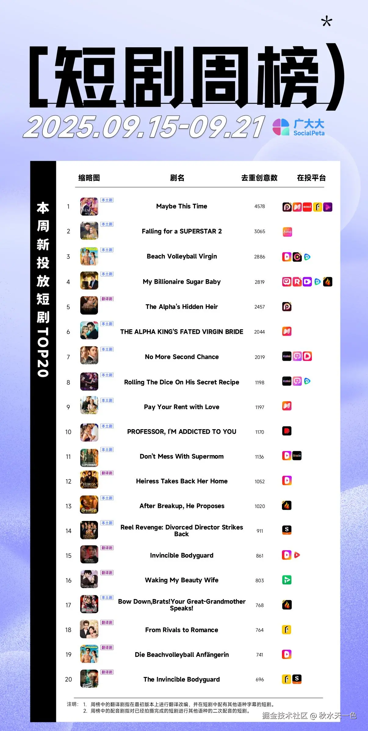 总的来说,该剧因为人设带来的丰富冲突极具观影价值,两人在互相探索的过程中也是张力满满,目前该剧投放创意的总展现估值也是超过了4KW,在上周新投放短剧中一骑绝尘,欢迎感兴趣的朋友使用广大大进行查看。