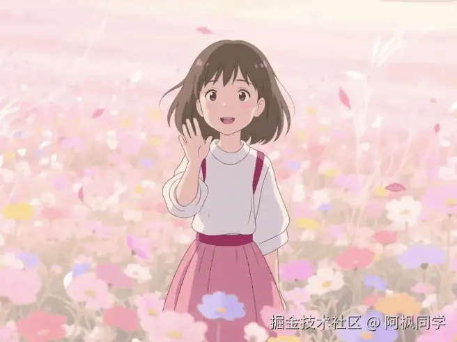 提示词:少女与花海,柔软的光线,吉卜力风格,细腻线条