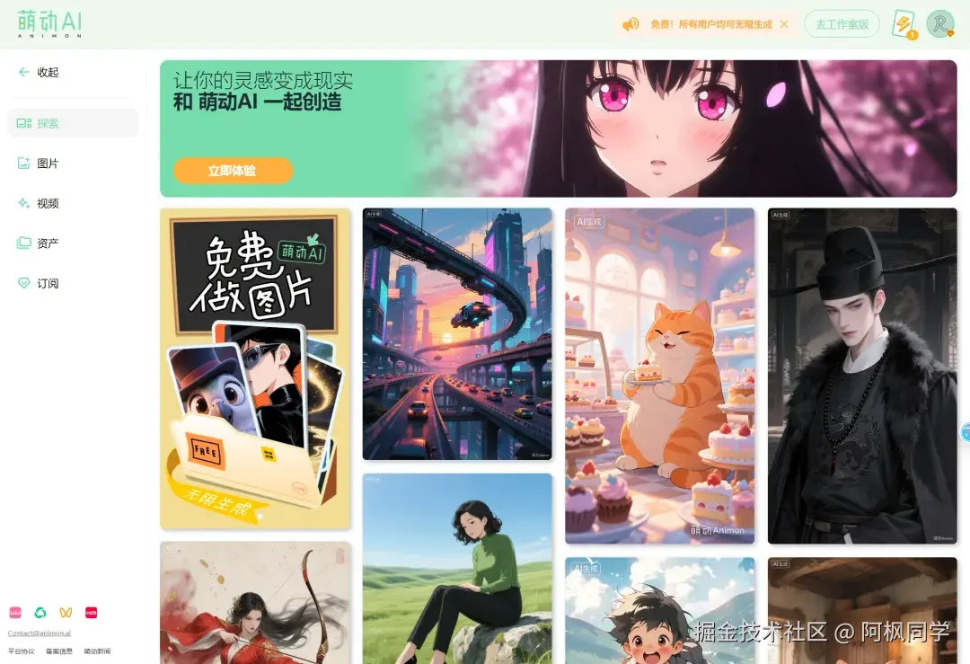 它是全球首款二次元/动漫专用的AI创作工具,我们可以通过输入文本、图片来轻松创作出优质的动漫图片以及动漫视频。并且所有人都可以免费不限次数的使用文字/图片、首尾帧以及视频续写功能来创作图片和视频图片。
