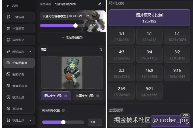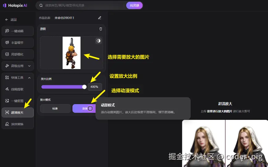最终用的「卡通幻想怪兽模型 | HOLO-V1」,感觉 "细节清晰度" 不是很够,点击 快捷工具 → "超清放大":