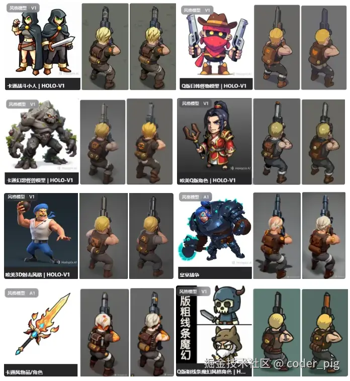 这里使用第二种复刻套路:相似图裂变,这里使用和角色一样的模型: