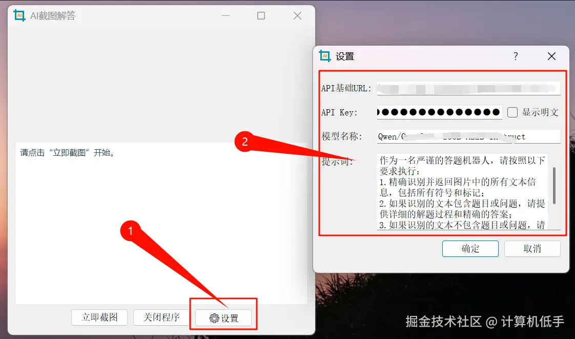 工具安装使用实操教程参考: AI截图解答工具,可自定义设置多模态模型和提示词