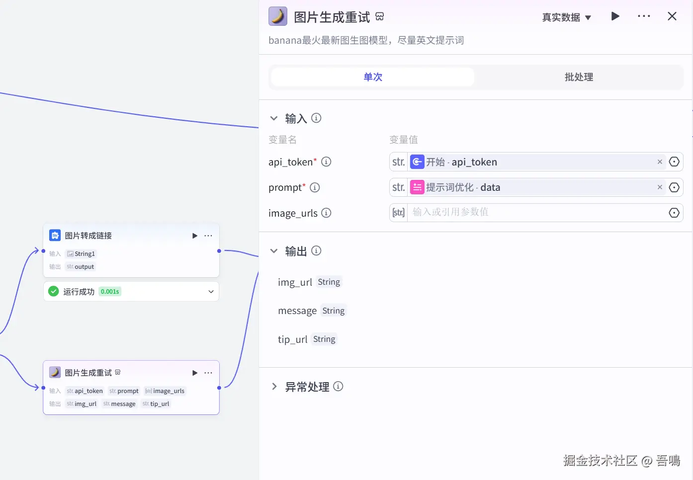 这个节点使用了扣子三方插件 香蕉图像模型 的 banana_edit工具。在图像生成节点失败后会升级到高级模型生成图像,以保证生图质量。