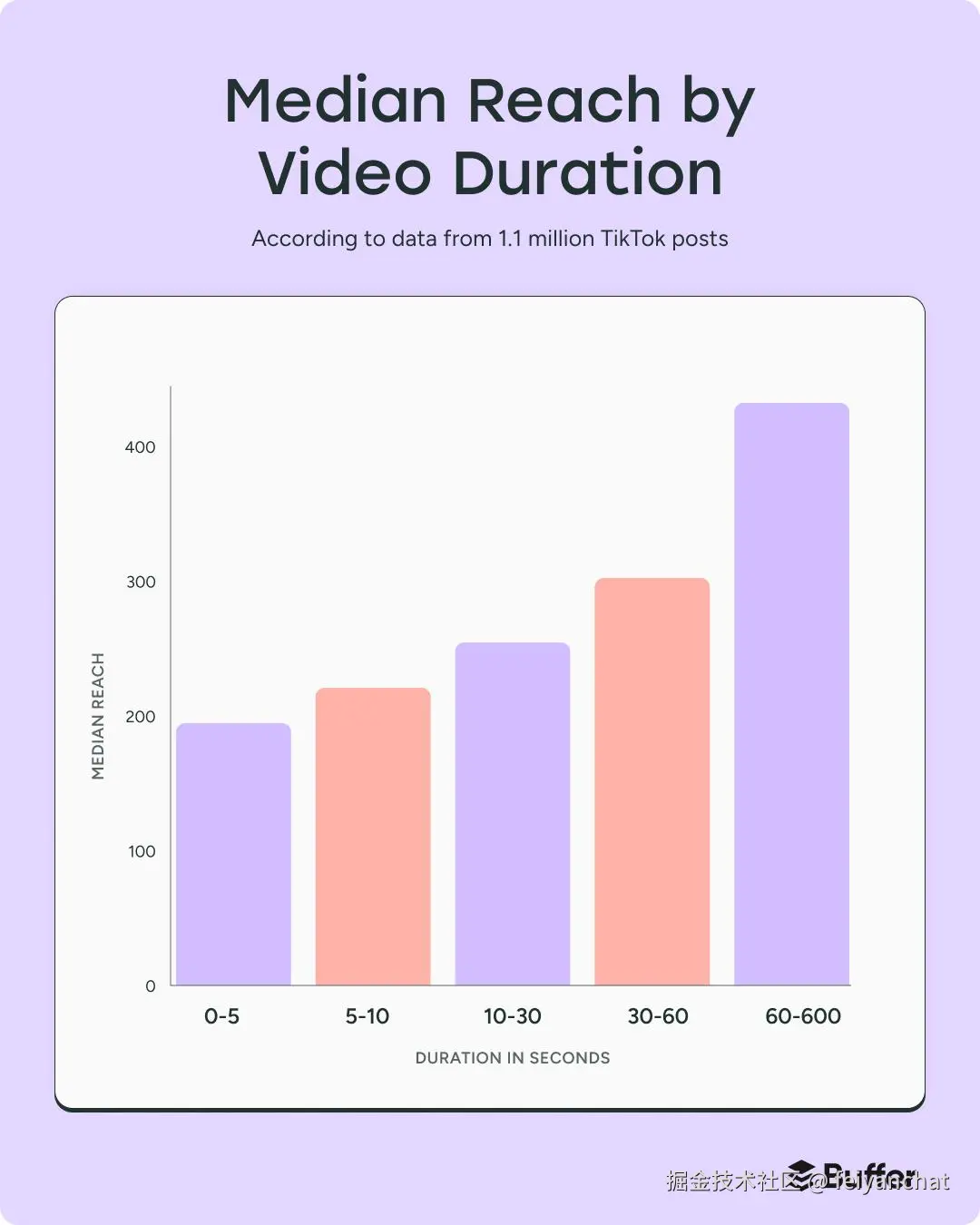 根据超过100万条帖文的分析,超过1分钟的TikTok视频获得: