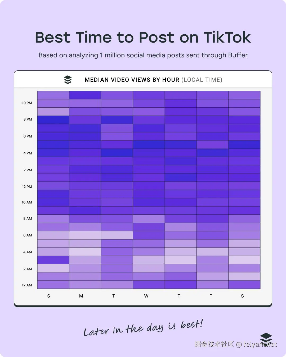 发布时间不是万能的,但在TikTok上确实很重要。你希望在受众最有可能看到和互动的时候发布内容。