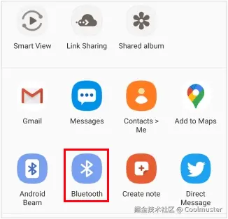 步骤4:在三星手机上找到要发送的文件,然后单击“共享”>“蓝牙”。然后选择您的LG手机。最后,在LG手机上单击“接受”即可接收文件。