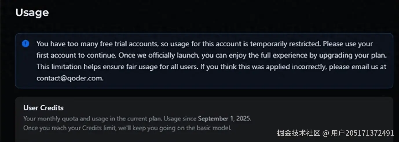 Qoder 的封禁机制主要是防止滥用。对开发者来说,提前了解规则、合理操作,就能轻松避坑。遇到账号冻结,也不必慌张,按官方步骤操作即可恢复使用。