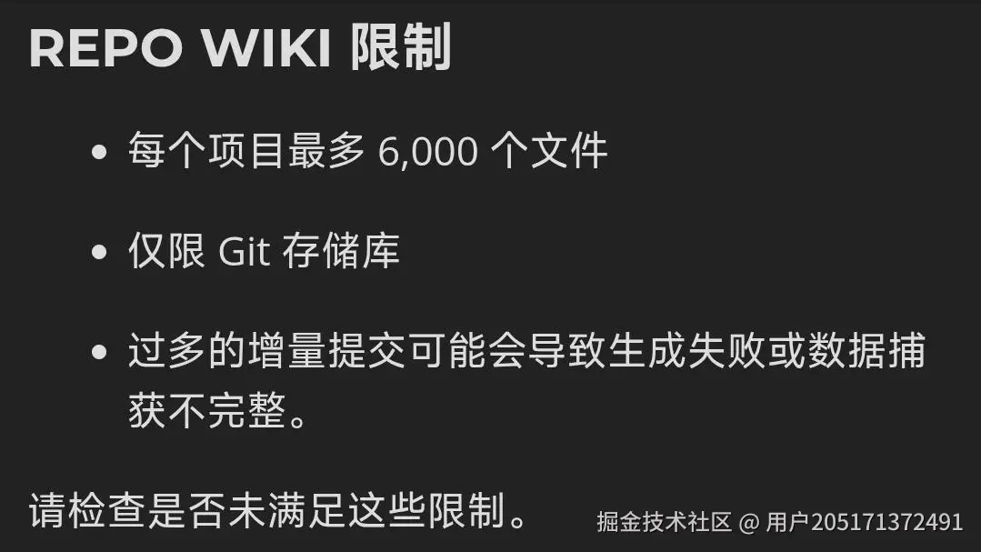 3.操作超额 如批量生成 Repo Wiki、多文件调用等,如果超过系统上限,账号会被暂时锁定。