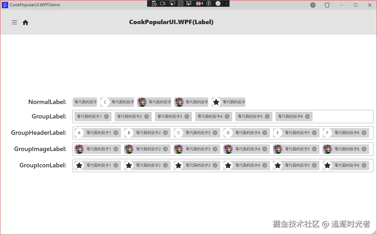 设置 CookPopularUI.WPFDemo 为启动项目查看运行效果: