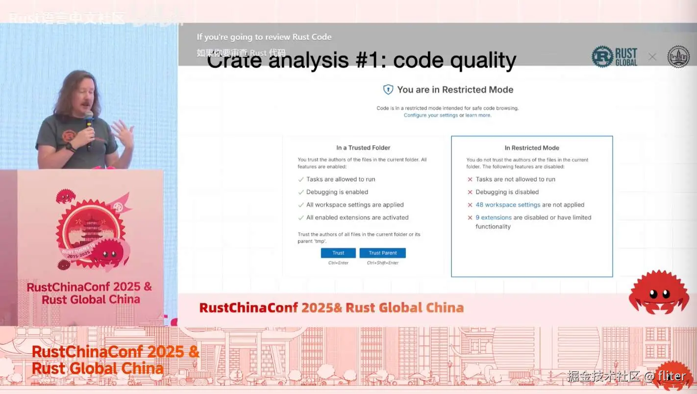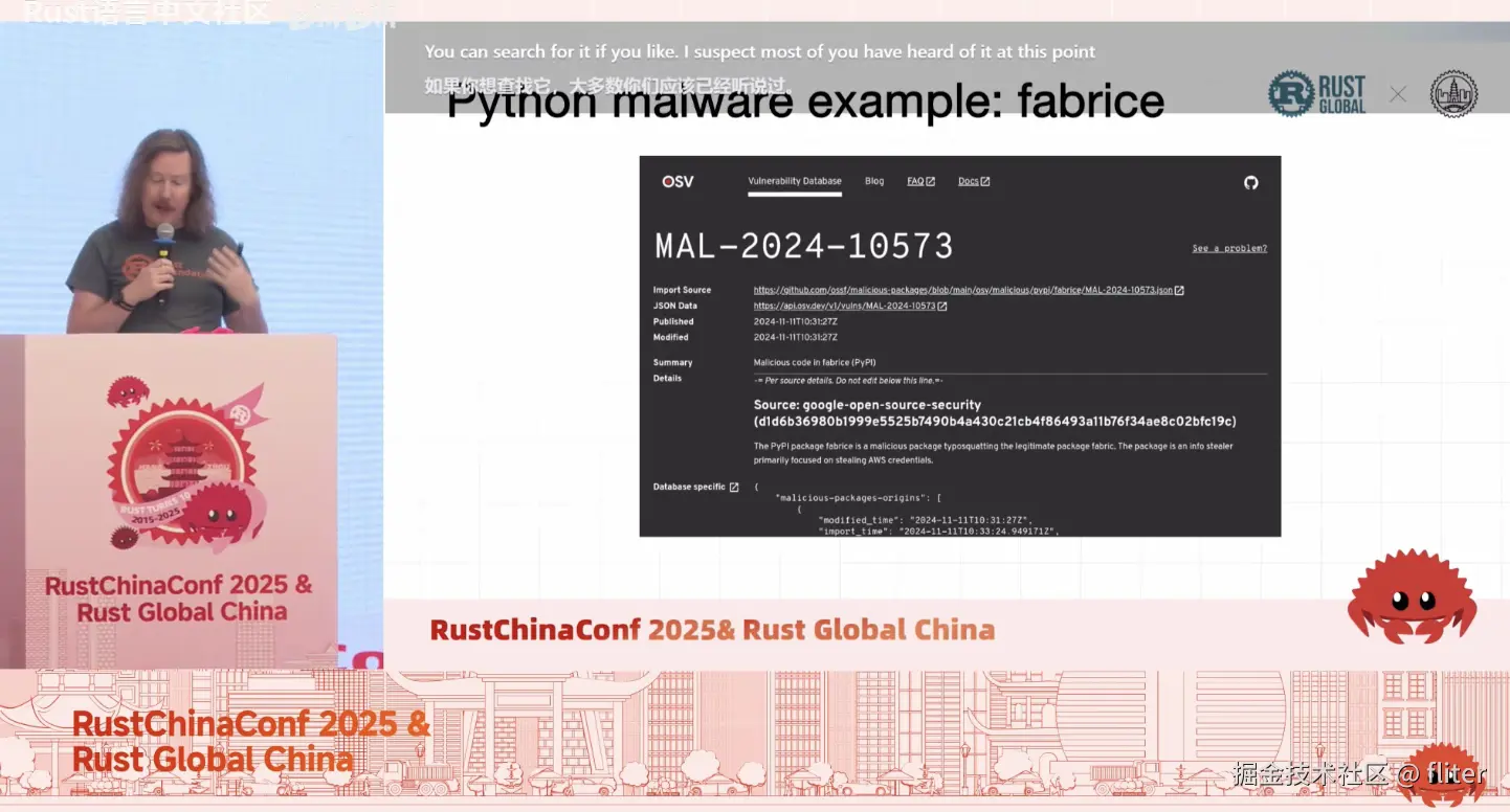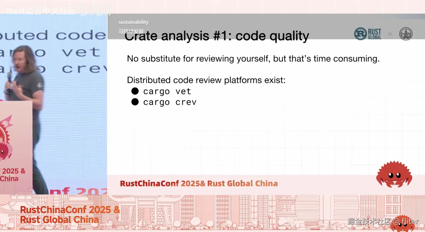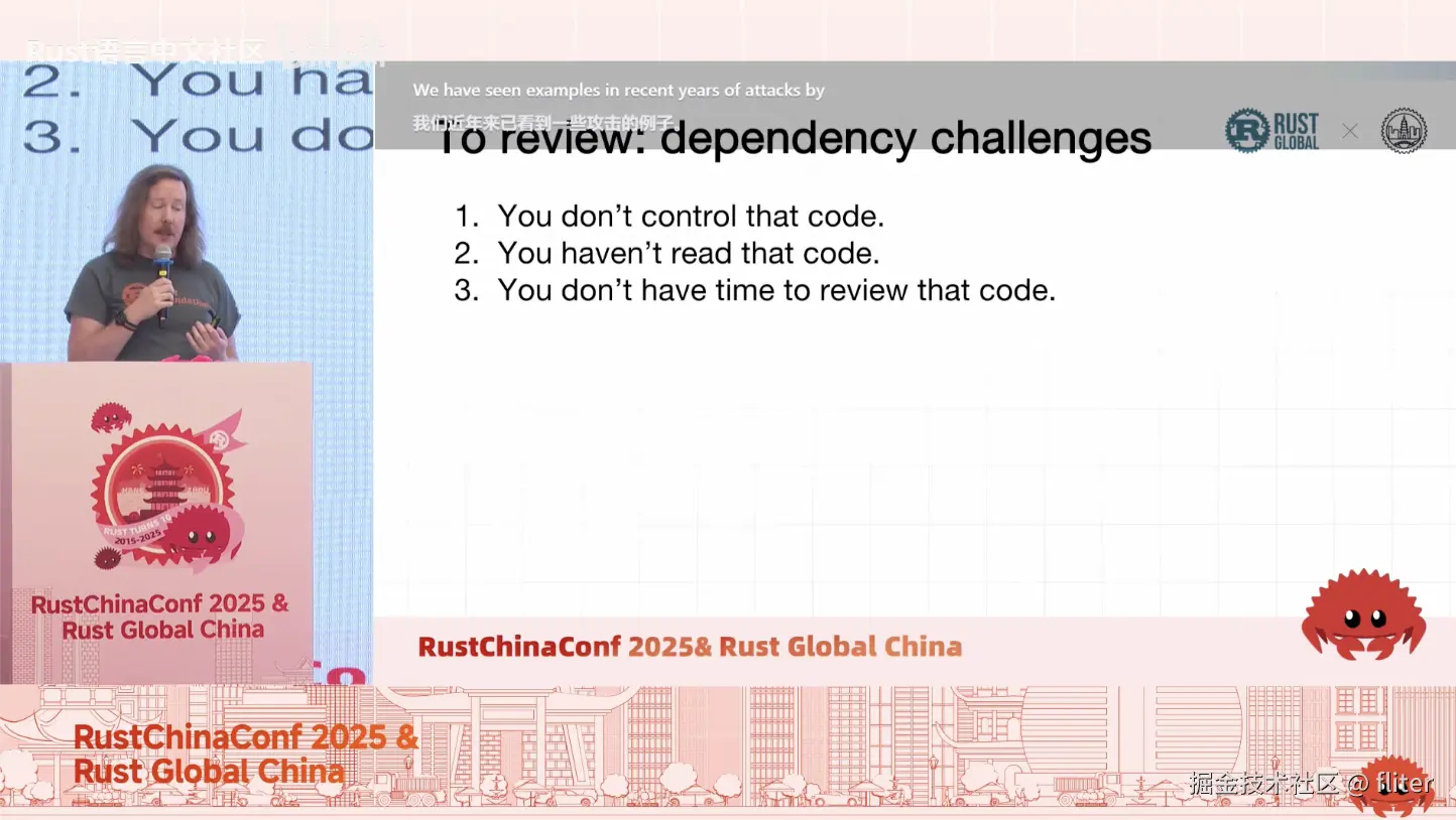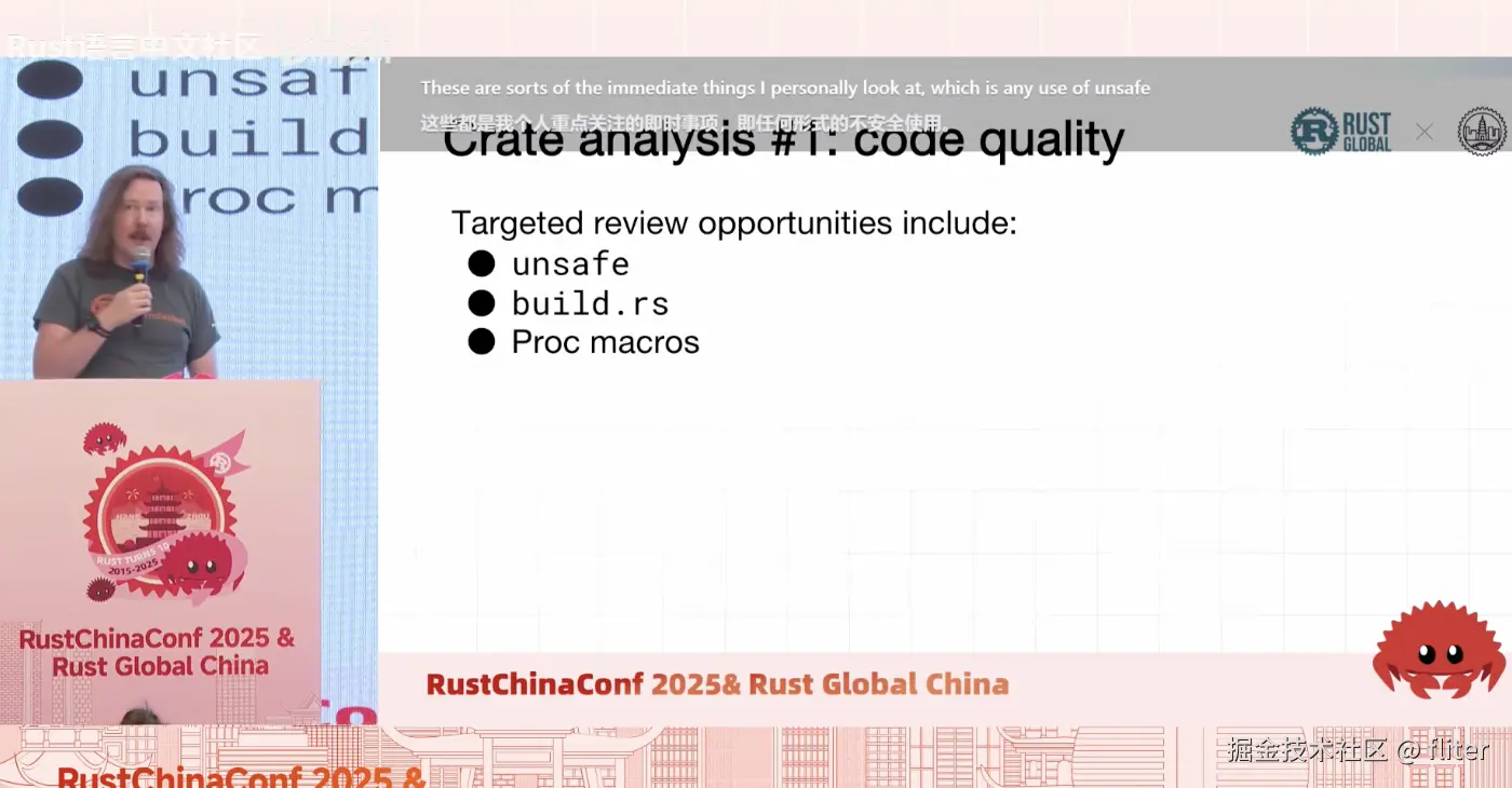本内容是对 RustConf Chian 2025系列演讲中 2025年的 Crate 安全:工具与技术 内容的翻译与整理。推荐点击链接观看原视频。