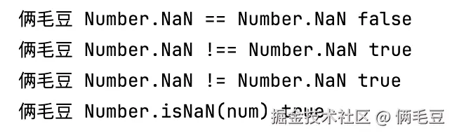 console.log("俩毛豆 Number.NaN !== Number.NaN true");