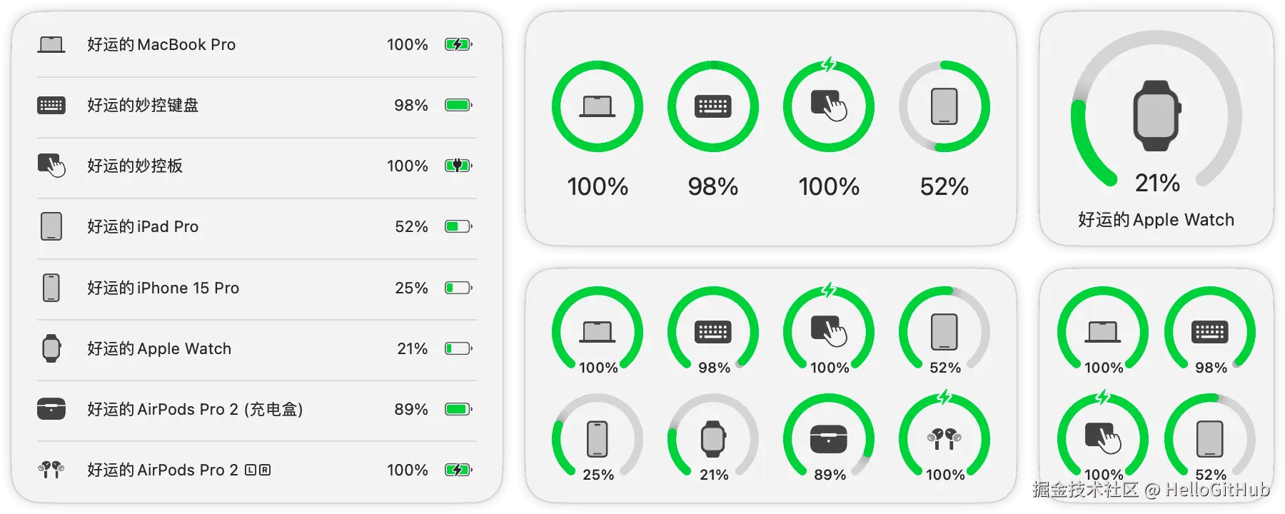 28、AirBattery:隔空查看苹果设备电量的 Mac 工具。这是一款专为 macOS 设计的电量监控工具,能在 Mac 菜单栏实时显示 iPhone、iPad、AirPods 和 Apple Watch 等设备的电池电量。无需在 iOS 端安装任何 App,即可在电脑端查看设备当前电量、充电状态,并支持低电量提醒。