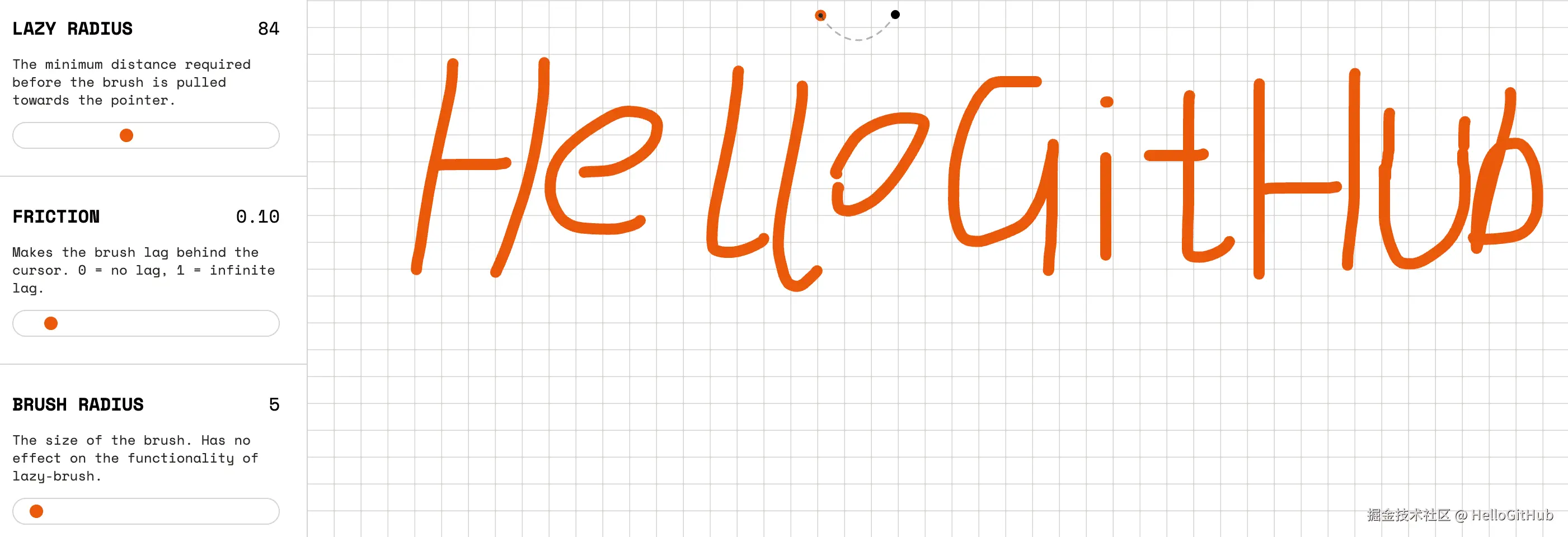 15、lazy-brush:平滑手写与签名的 JavaScript 库。这是一个用于平滑绘图的 JavaScript 库,支持通过鼠标或手指流畅绘制画笔轨迹。它采用“惰性画笔”算法,有效减少手抖、锯齿等问题,让线条更加自然顺滑,适用于画板、签名、手写等多种场景。