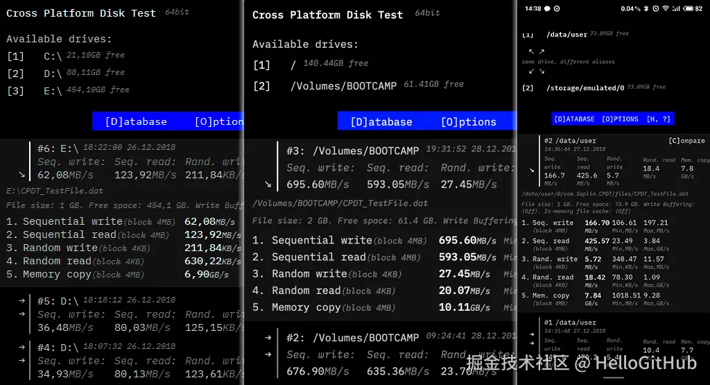4、CrossPlatformDiskTest:多平台硬盘性能测试工具。这是一款开源的存储与内存性能测试工具,适用于固态硬盘、机械硬盘、U 盘等存储设备。支持顺序和随机读写测试,提供 IOPS 和 MB/s 等性能指标,兼容 Windows、macOS、Linux、Android 系统。
