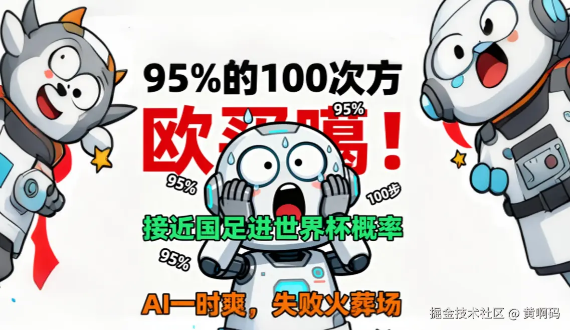 假设智能体每一步的准确率高达95%,当它连续执行20个步骤时,最终的成功率是 95% 的 20 次方,结果仅为 36% 。这只是单个任务,如果像大家非常喜欢的Vibe Coding是多个任务同步或交叉运行,运行100次后的结果更是只有0.592%,接近国足进世界杯概率。