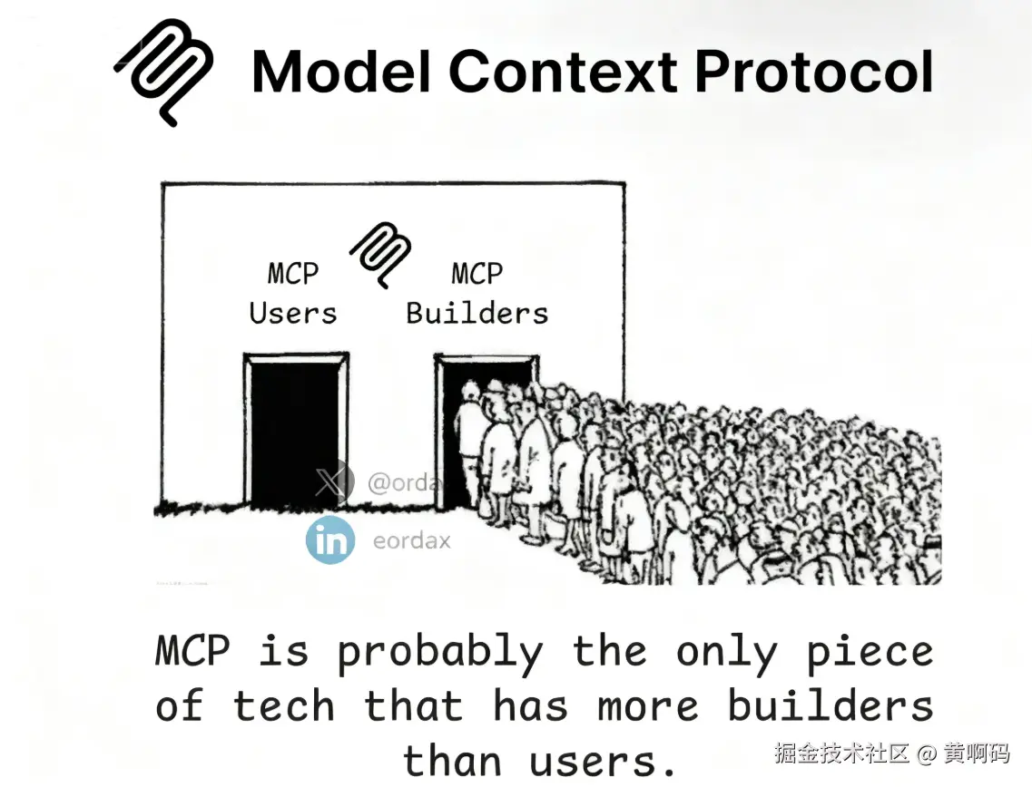 翻译过来就是:MCP可能是唯一一个开发者多于用户技术
