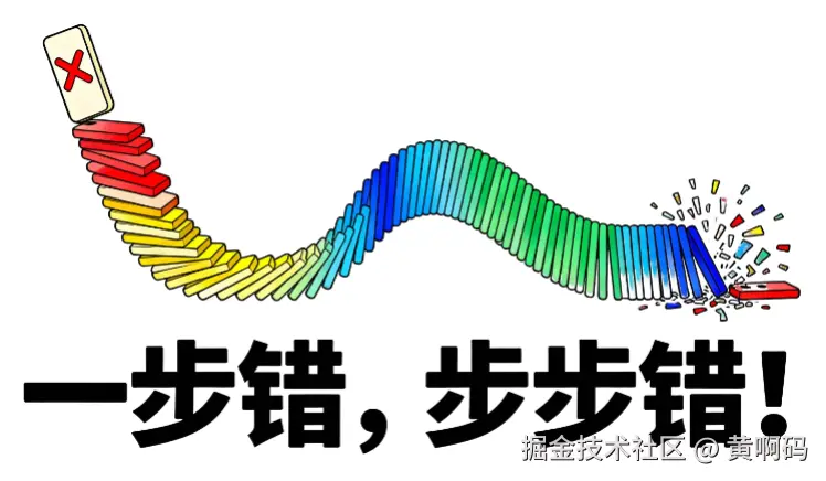 跟我们常说的多米洛骨牌效应是一致的,牵一发而动全身,一步错,步步错,举个现实点的例子: