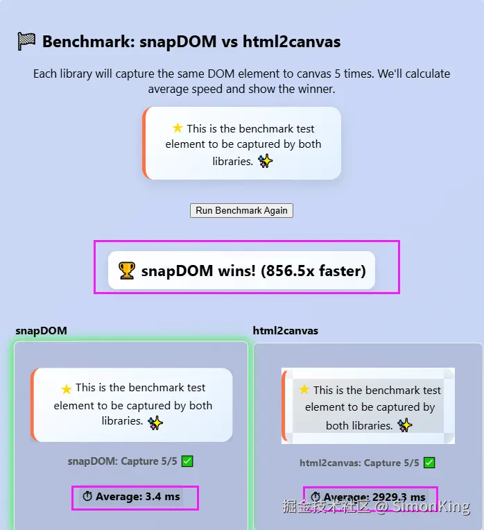 但今天,我要为大家介绍一个全新的利器——snapdom,它正在以惊人的性能表现重新定义前端截图!