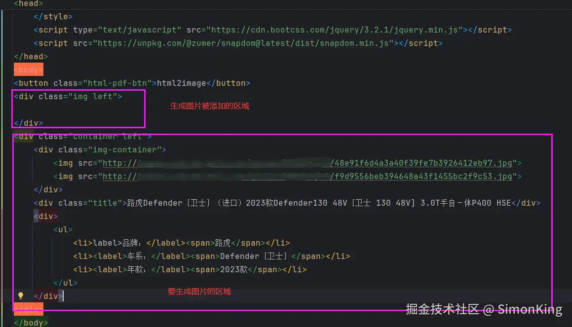 通过html2image按钮,将第二个框的区域转化成图片,然后添加到第一个框的区域。
