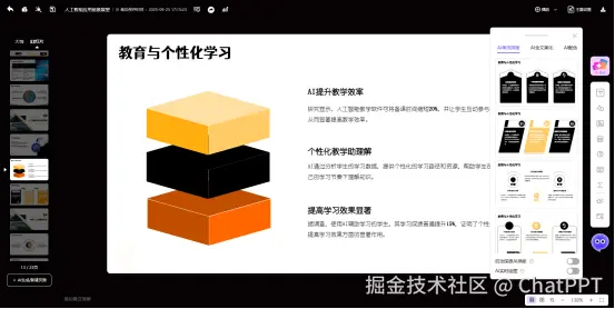 ChatPPT 是目前国内少有的覆盖「内容识别-智能美化-二次编辑」全链路的AI PPT工具