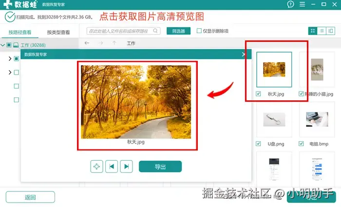 - 文件预览功能: 扫描出来的图片文件,如果是可恢复状态,那么我们能够在将文件导出恢复到电脑之前进行内容的预览;