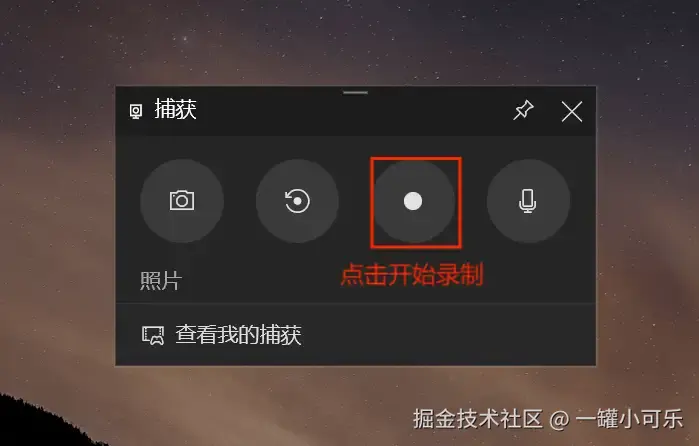 步骤2:点击 “捕获” 或 “录屏” 按钮,选择 “开始录制” 就可以了。录制过程中,你可以随时通过Xbox Game Bar调整设置或停止录制。
