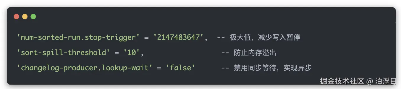 这个配置呢,的确能够解决小文件带来的反压问题。但是数据湖这种东西呢,你这样做肯定是有trade off的。接下来我们就来详细看一下这些配置的背后含义。