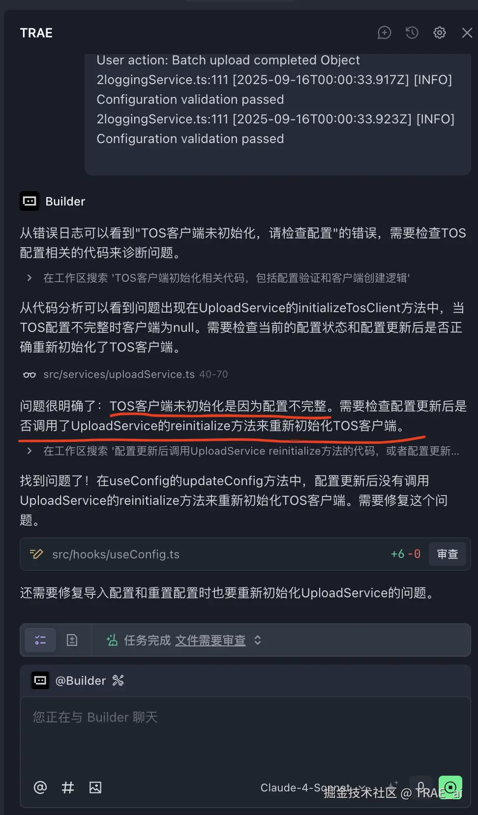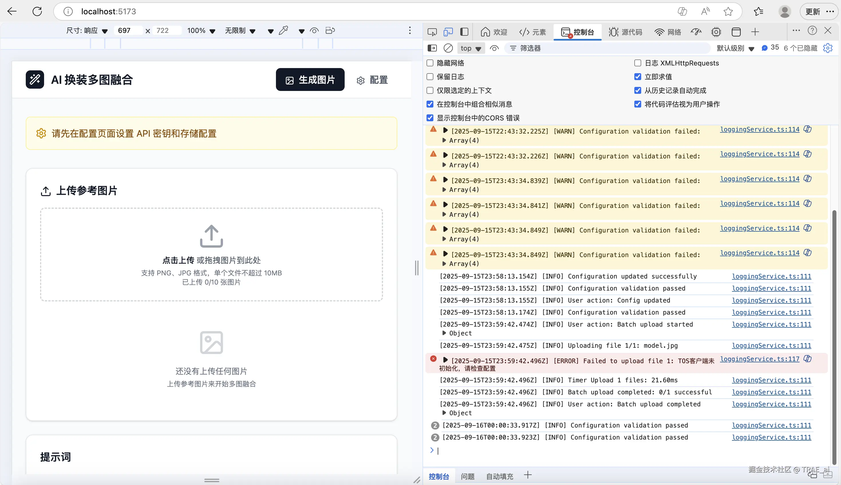 loggingService.ts:117 [2025-09-15T23:59:42.496Z] [ERROR] Failed to upload file 1: TOS客户端未初始化,请检查配置