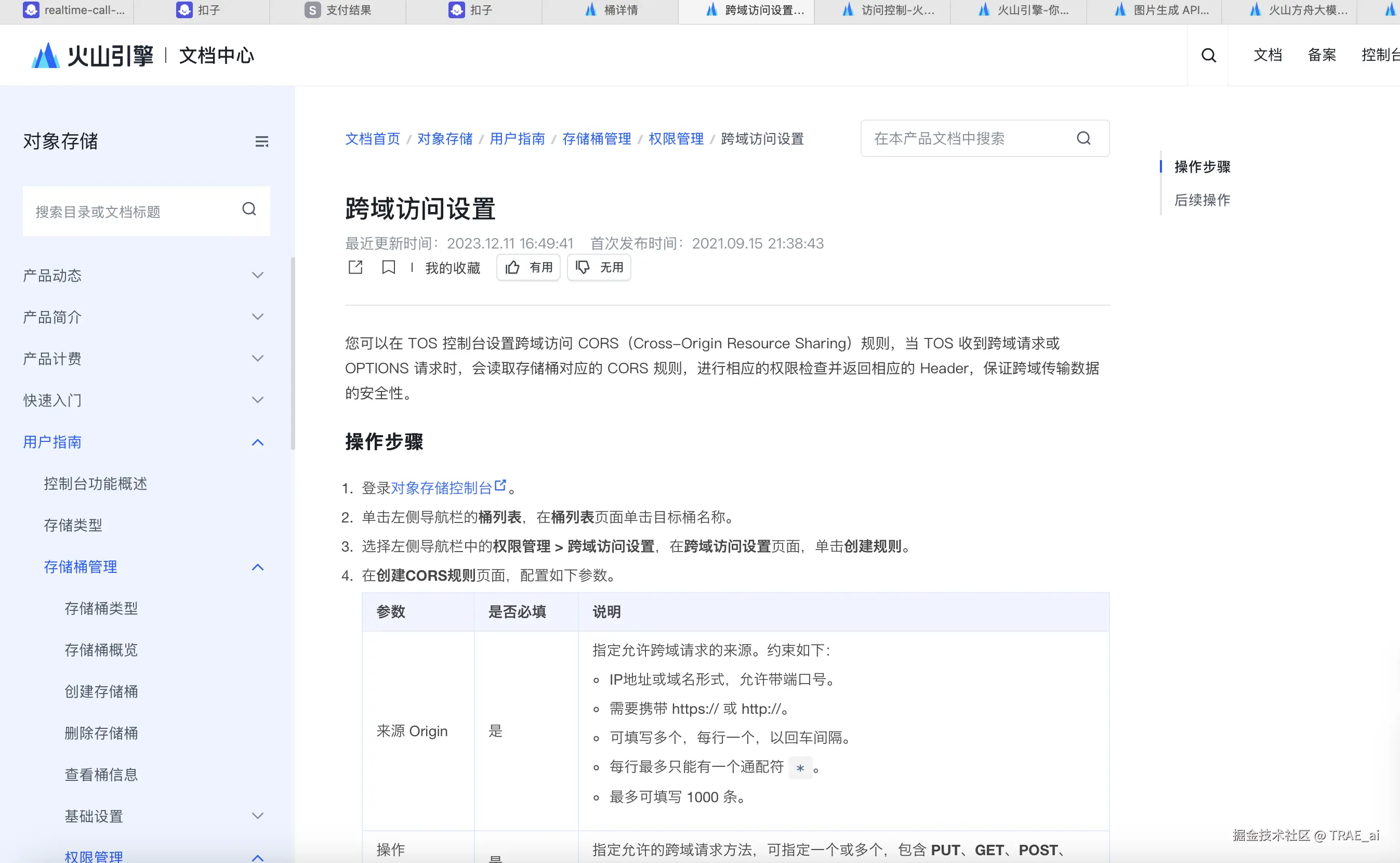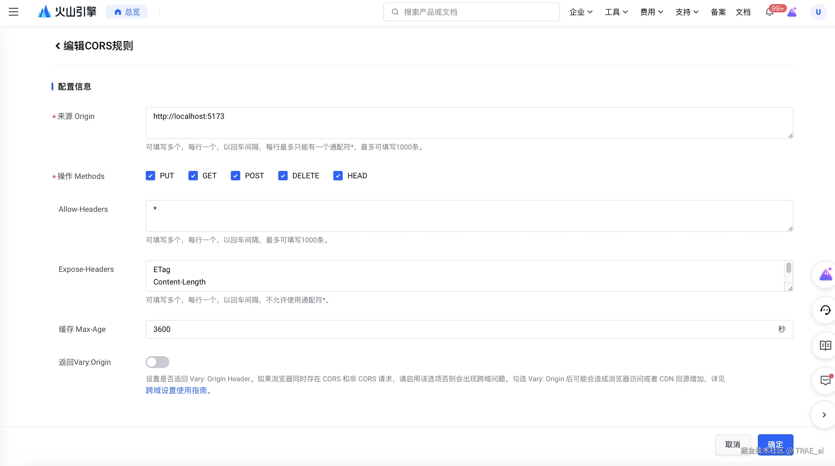 关键参数全部列出 :TOS 的相关参数配置,需先参考火山引擎官方文档,再在其控制台完成配置,具体操作此处不做赘述。
