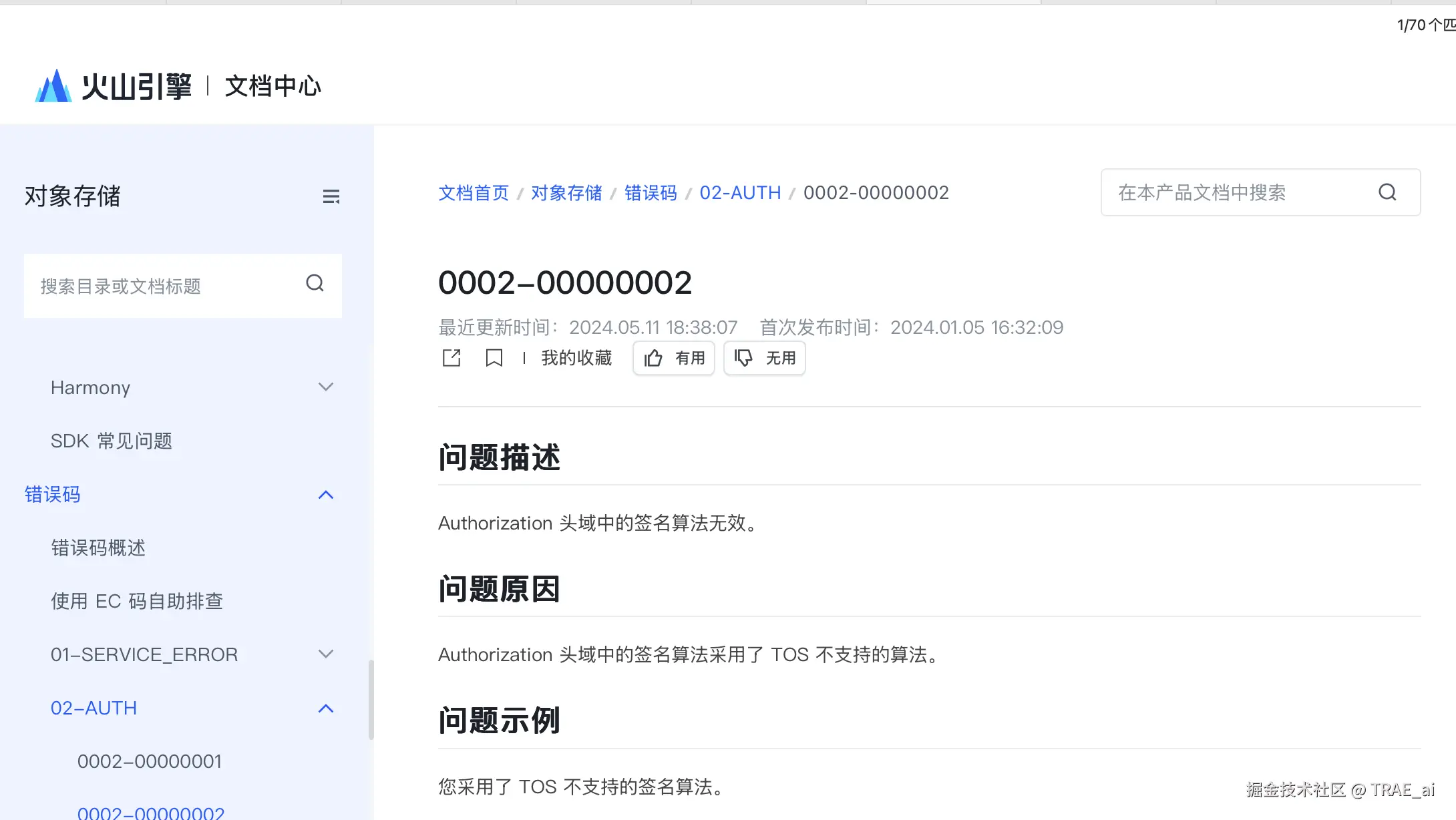 修改桶权限后,继续运行。然而又出错了:Authorization 头域中的签名算法采用了 TOS 不支持的算法。