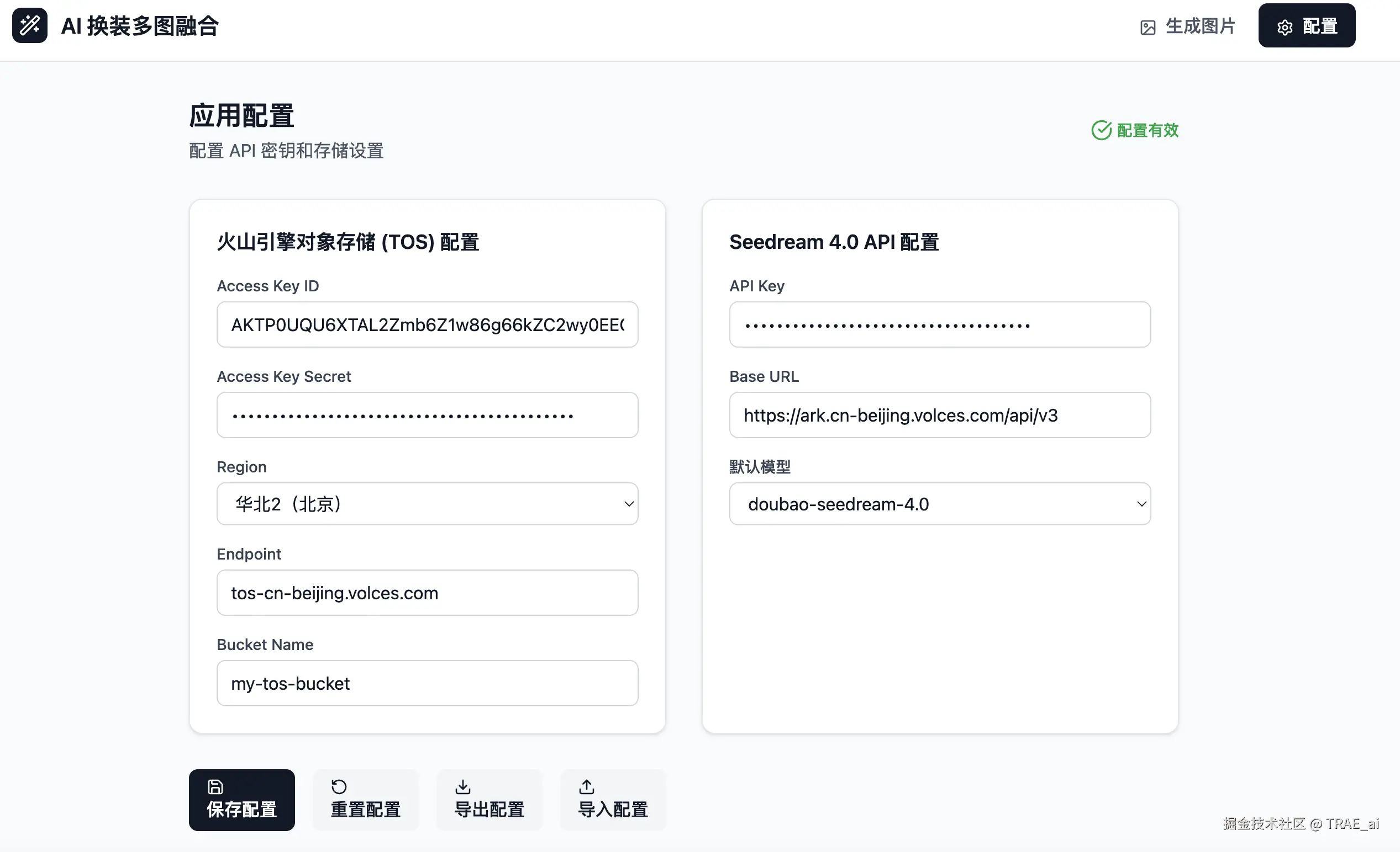 用户上传图片 → 火山引擎对象存储 → 获取图片URL → Seedream API → 生成融合图片