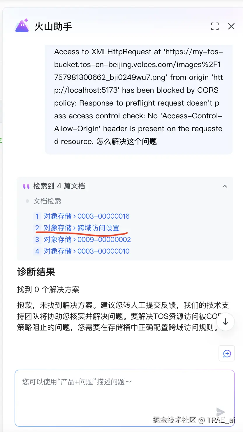 Access to XMLHttpRequest at 'https://my-tos-bucket.tos-cn-beijing.volces.com/images%2F1757981300662_bji0249wu7.png' from origin 'http://localhost:5173' has been blocked by CORS policy: Response to preflight request doesn't pass access control check: No 'Access-Control-Allow-Origin' header is present on the requested resource.