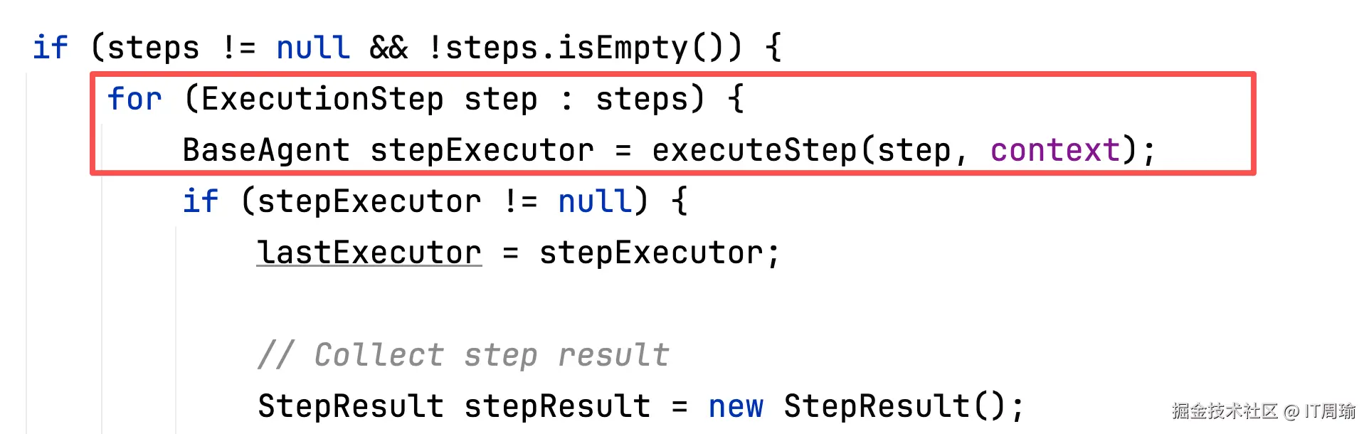 首先,在最外层,有一个循环,可以设置maxSteps来控制总循环的次数,防止无限执行,另外如果Agent完成了子需求,Agent的state就会被改成COMPLETED,从而退出循环,子需求执行结束。