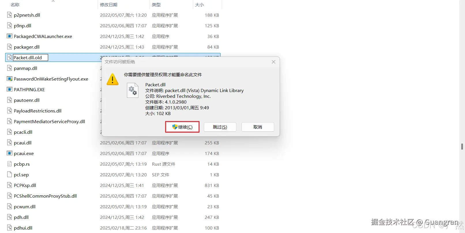 在C:\Windows\SysWOW64目录下找到Packet.dll文件,将其重命名为Packet.dll.old