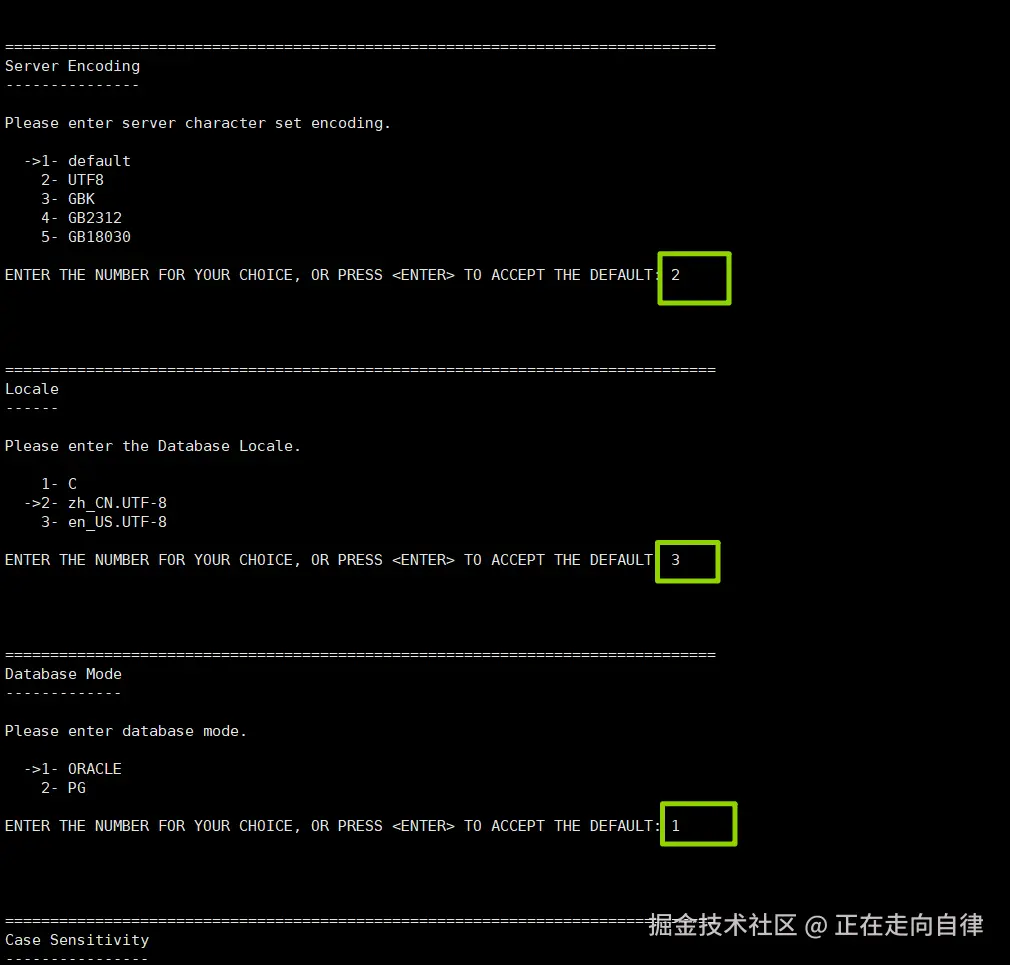 - 当字符集编码为 UTF8 时,默认区域值为:zh_CN.UTF-8(可选 en_US.UTF-8、C)