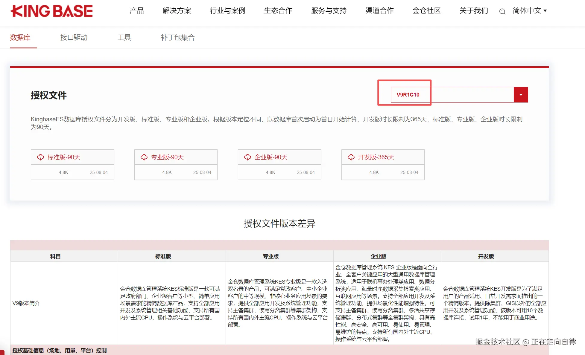 访问电科金仓官网(KES-电科金仓官网),KingbaseEs数据库安装包(Oracle兼容)-->V9R1C10(Oracle兼容版) --> X64 Linux-->下载KingbaseES_V9R001C010B0003_Lin64_install.iso镜像,如下所示: