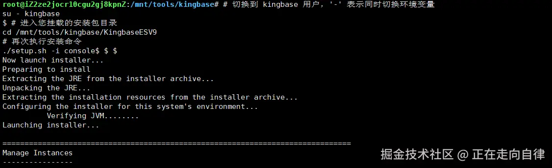 3、切换到 kingbase 用户进行安装: