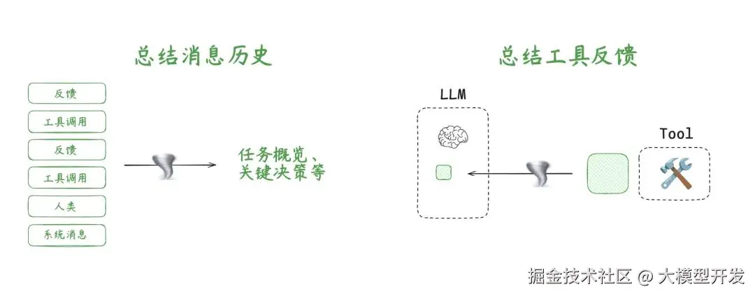 上下文修剪:摘要通常使用LLM来提炼最相关的上下文片段,而修剪通常是去除不相关的信息,仅保留必要的结果,例如从消息列表中删除较旧的消息。