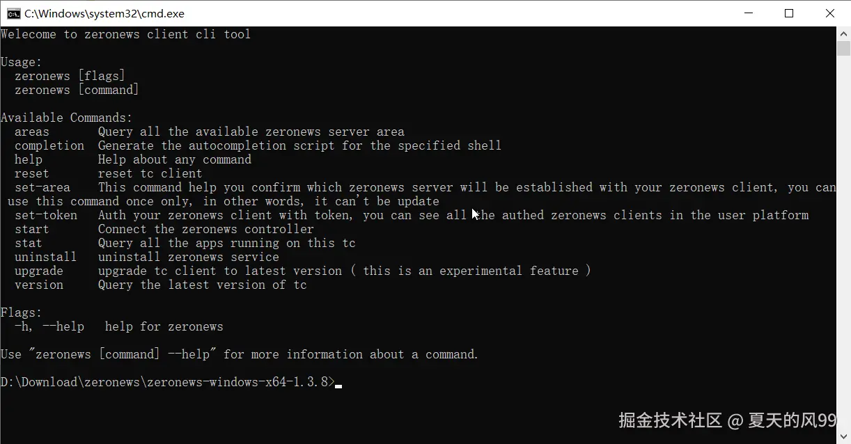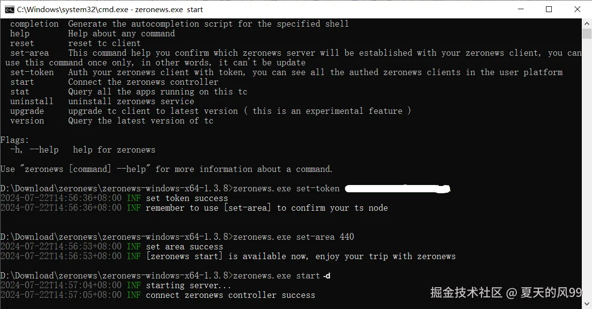 前台直接启动 ZeroNews,此方式为前端运行 ZeroNews 程序,关闭命令行窗口后,程序自动退出