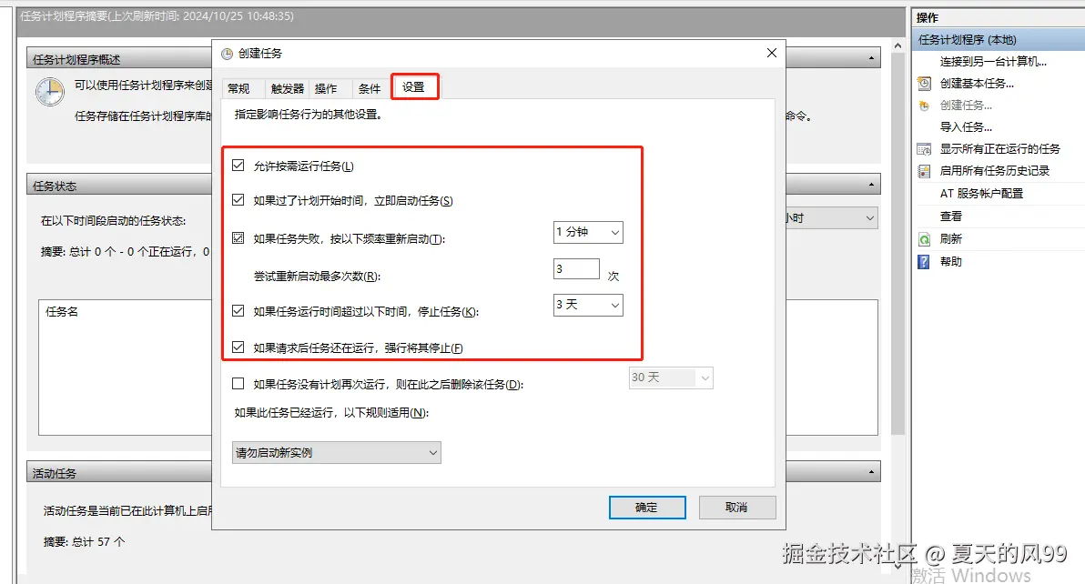 最后在创建任务窗口的 "设置" 界面中,按如下图勾选选中,然后点击确定,输入服务器密码,完成ZeroNews 启动认为的创建