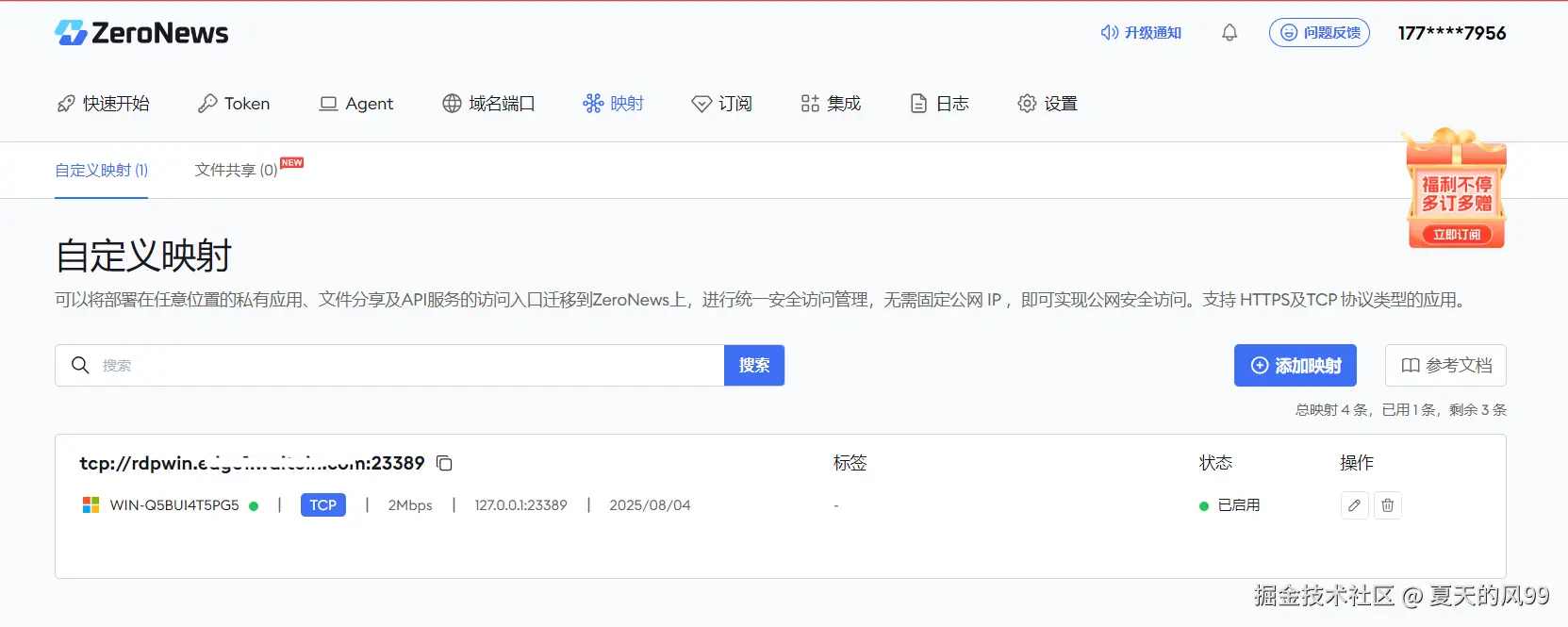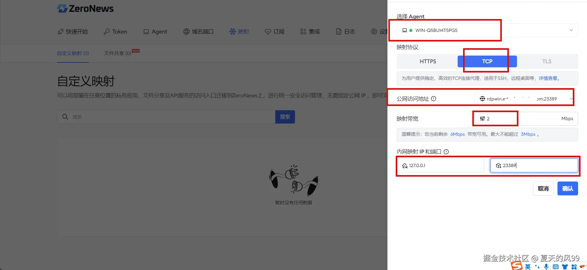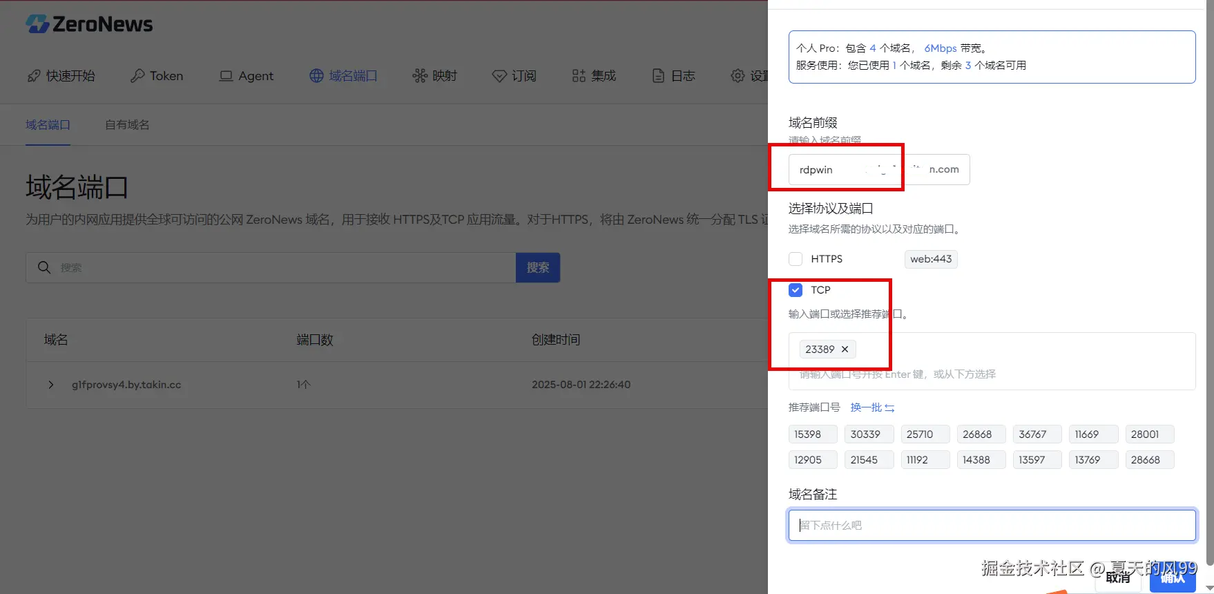 **第4步:**为远程桌面分配公网域名及端口
