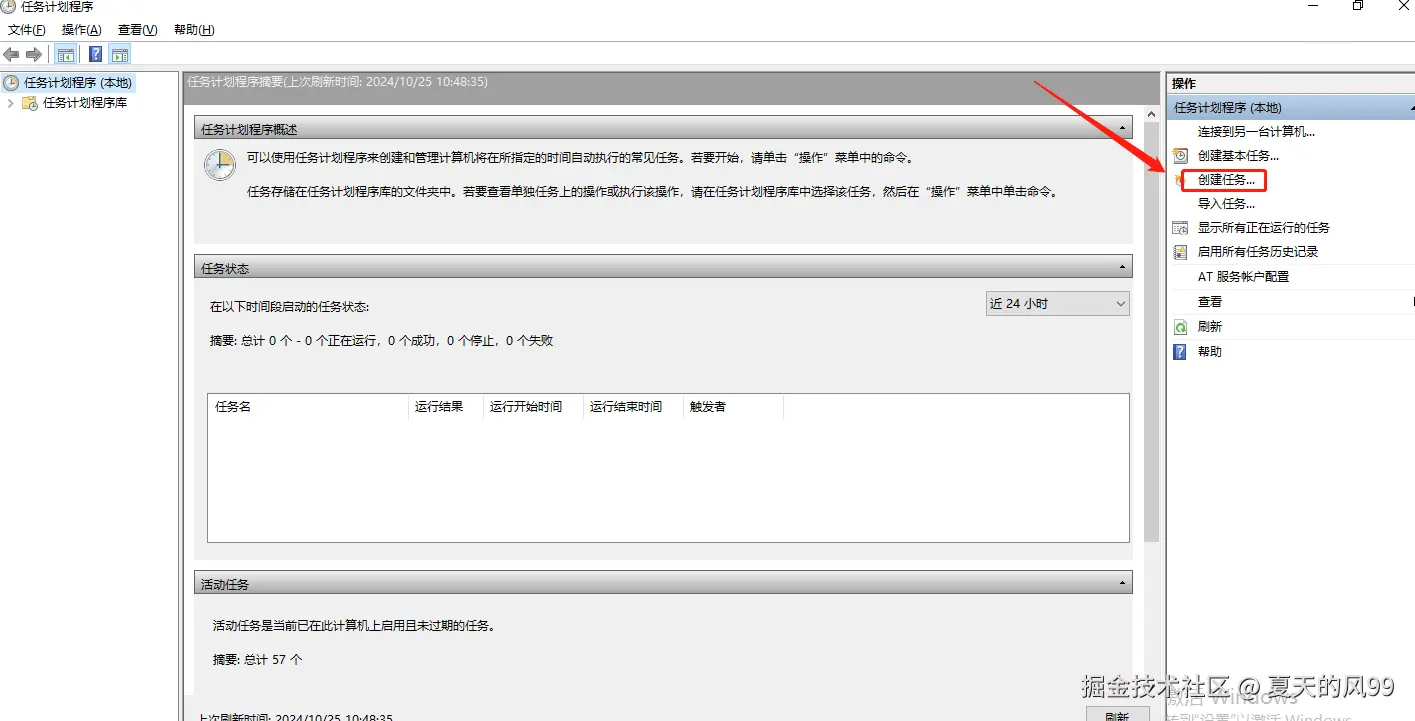 在任务计划程序界面,点击右边的"创建任务",添加 ZeroNews 任务计划
