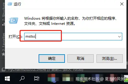 右键电脑屏幕左下方的系统图标,点击 "运行",输入 mstsc,按下 Enter 键,打开 RDP 远程桌面客户端。