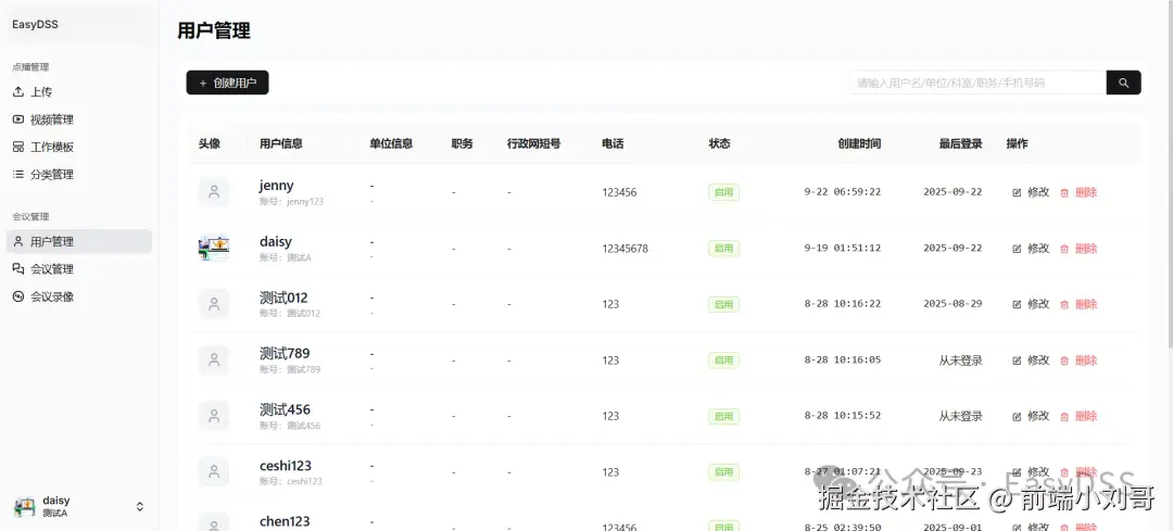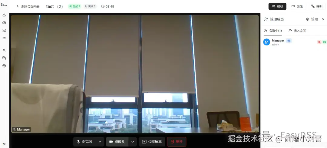 - 场景:企业内部搭建基于EasyDSS的视频会议系统,进行日常站会、项目评审。结合屏幕共享功能,实现高效的远程协作。