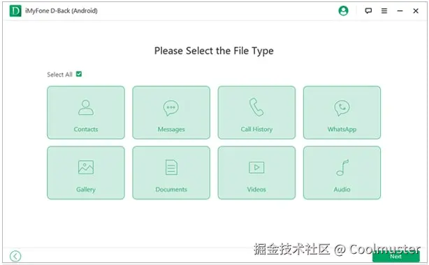 要解决如何恢复手机内存的问题,您还可以尝试 iMyfone D-Back ( Android )。这是一款易于使用的手机存储恢复软件,恢复成功率很高。它支持超过 11 种文件类型,包括照片、视频、联系人、消息和 WhatsApp。它还能够从损坏的设备中恢复丢失的文件。此外,除了从Android内存和 SD 卡恢复文件外,iMyfone 还提供了一种模式,可让您高效地从 Google 备份中恢复数据。