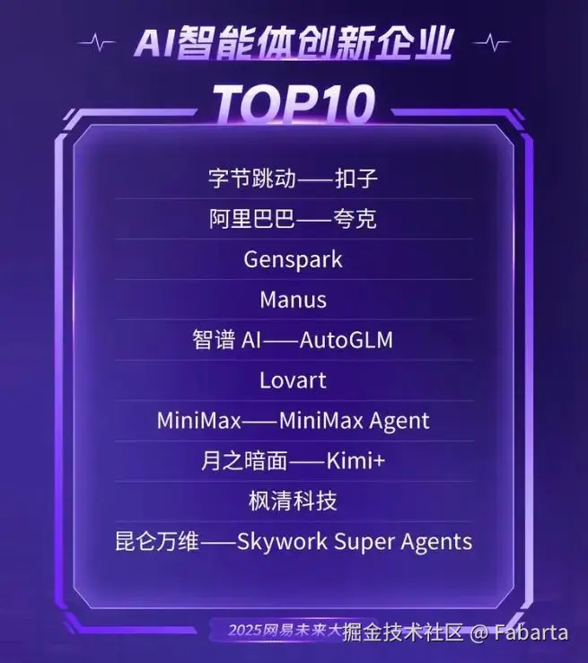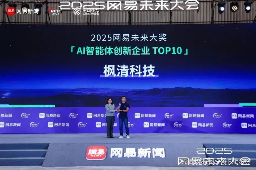 9月27日,2025网易未来大会在杭州圆满落幕,备受瞩目的年度AI大奖榜单重磅揭晓。枫清科技(Fabarta)凭借自主研发的AI智能体技术突破与商业化落地能力,成功入选「AI智能体创新企业TOP10」榜单,成为行业创新突破的标杆力量。