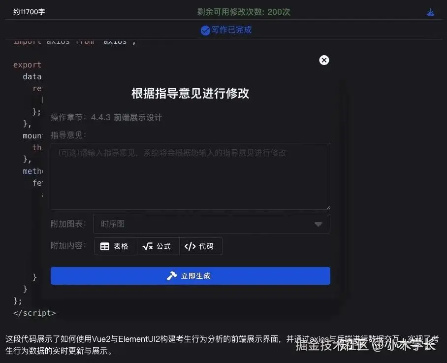 - 复杂内容一键生成:支持按需生成图表、代码、公式、数据展示等内容,广泛适用于理工科和跨学科写作场景。