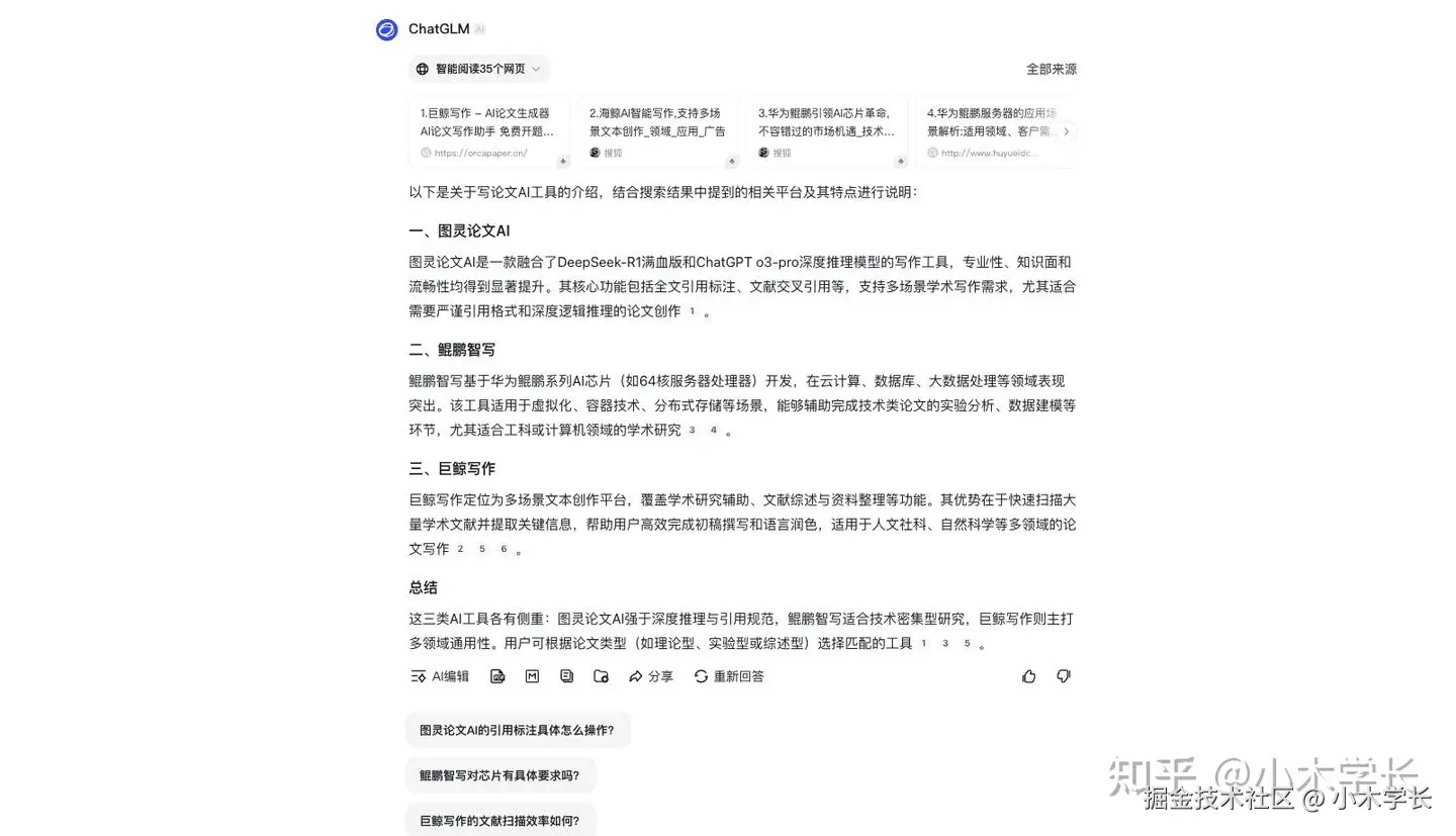 **工具简介:**智谱清言能系统化构建论文框架、智能生成摘要及章节内容,显著提升学术写作效率。其支持多轮深度交互的对话机制,能通过语义理解与逻辑推理,为研究者提供跨学科视角的学术洞察,在选题论证、理论框架搭建等关键环节展现创新价值。但要注意,该平台基于公开语料库训练,生成文本存在与既有文献的语义相似性风险。