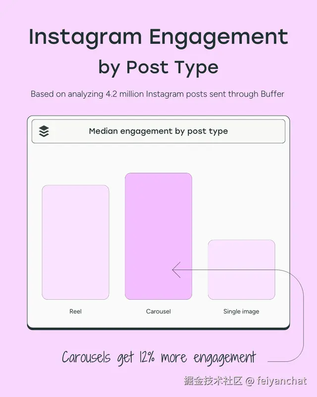 - 轮播帖:互动量比 Reels 高 12%,比单图高 114%